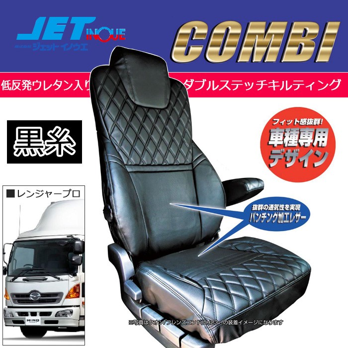 JETINOUE ジェットイノウエ シートカバーCOMBI 運転席用 (黒/黒糸) [HINO レンジャープロ 標準 H14.1~H29.4 ]