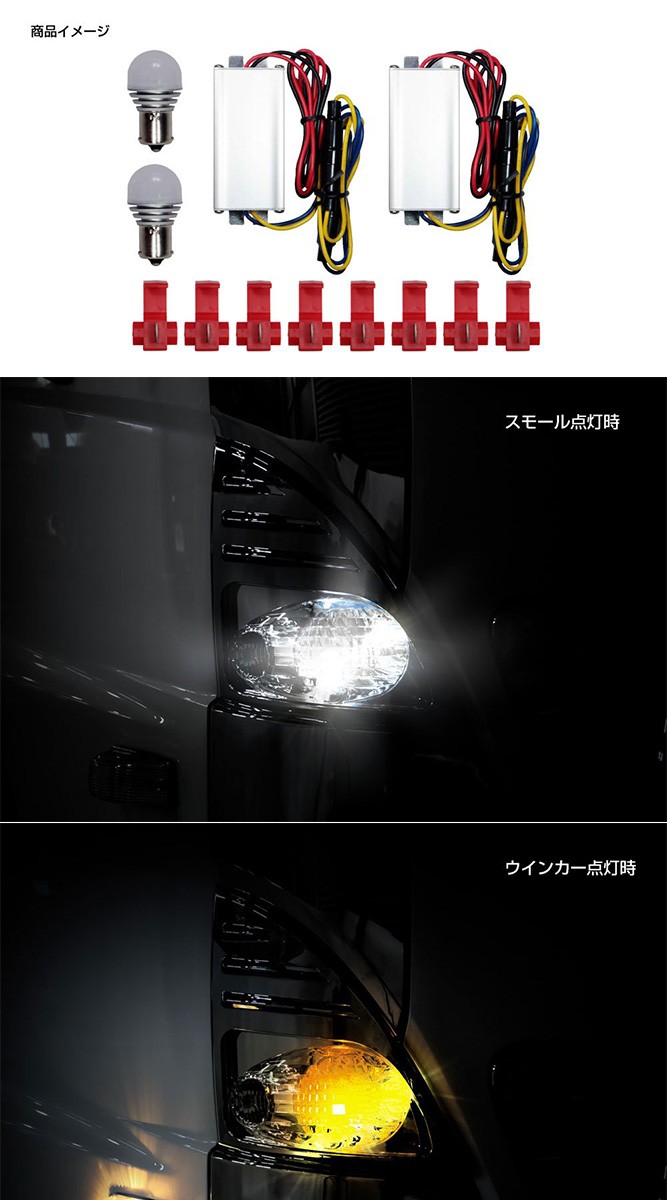| 純正のウインカーランプにポジションランプ機能を追加できるキットです。 昼間にスモールライトを点灯させると、デイライト的な使い方もできます。 ウインカーを作動させればポジションランプは消灯し、アンバー色で点滅します。 ハイフラ現象を防止する機能も搭載しています。 ![]()