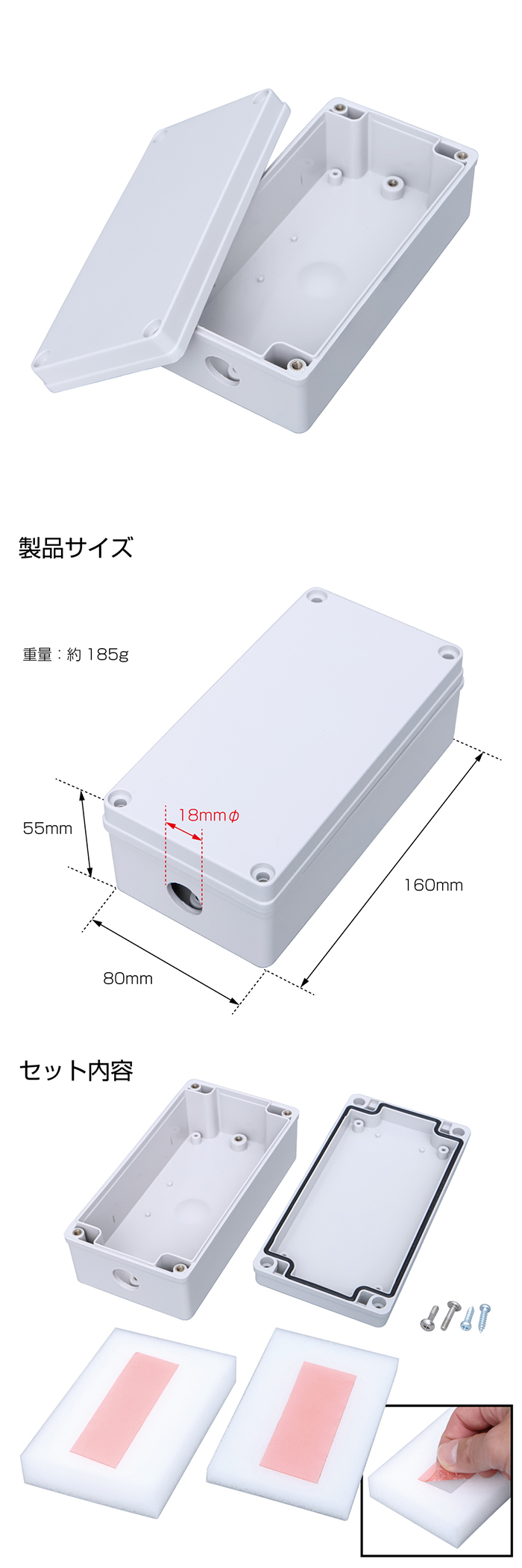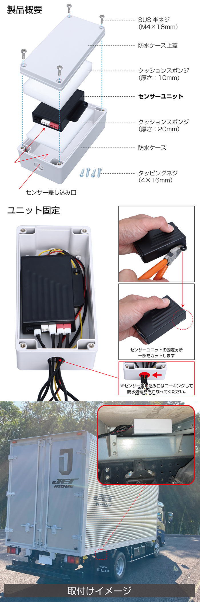 超音波センサー ユニット用防水ケース 平ボディ車など、センサーユニットを車外に付けざるをえない場合に使用するBOXです。 ![]() ![]() ![]()