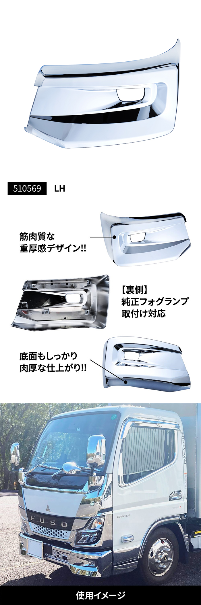 | 20キャンター メッキバンパーコーナースポイラー 標準車用 | ||