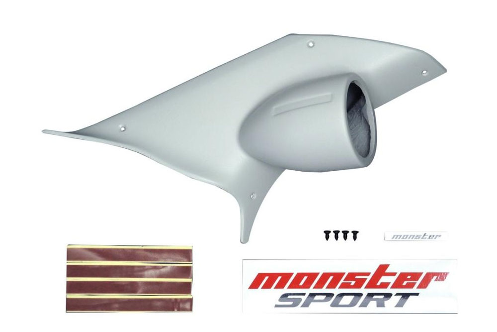 | 材質:FRP 表面処理:グレー・シボ塗装仕上げ サイズ:φ60 重量:約150g 付属品:本体×1、両面テープ(t:1.2×10×100)×4、皿タッピングビス×4、MONSTER SPORTエンブレム、取扱説明書 |