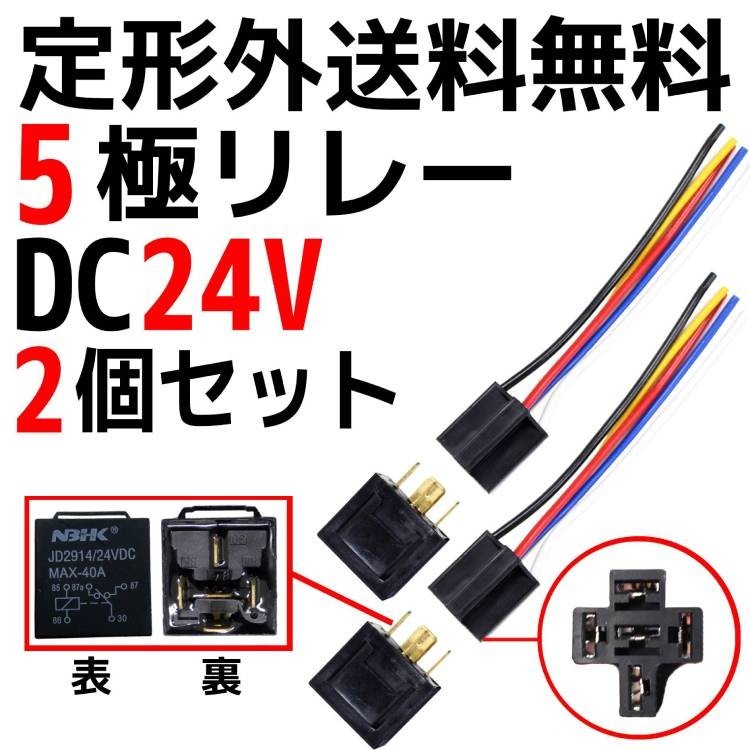 定型外送料無料 5極リレー 汎用 流用 カプラー配線付 5線 DC24V用 40A 2個 HID セキュリティー キーレス エアサス 複数注文可能