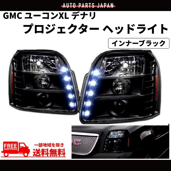 特注 日本光軸 GMC ユーコン デナリ 07-14y インナーブラック LEDプロジェクター ヘッドライト 左右セット アンバーリフレクター 送料無料