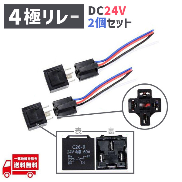 汎用 流用 4極リレー カプラー配線付 4線 DC24V用 60A 24V 2個 HID セキュリティー キーレス エアサス 複数注文可能