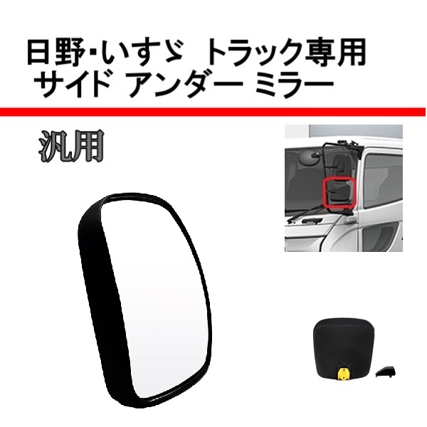 新品 社外品 汎用 日野 いすゞ サイド アンダー ミラー 大型 車 トラック 専用 黒 ブラック 交換 補助 HINO ヒノ イスズ 五十鈴 送料込
