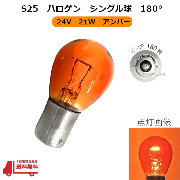 S25 ハロゲンバルブ シングル球 オレンジ 橙 アンバー 21W 24V 1個 ピン角180度 イエロー 黄