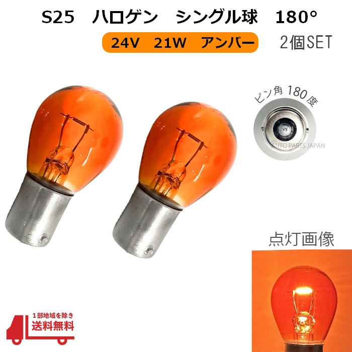 S25 ハロゲンバルブ シングル球 オレンジ 橙 アンバー 21W 24V 2個 ピン角180度 イエロー 黄