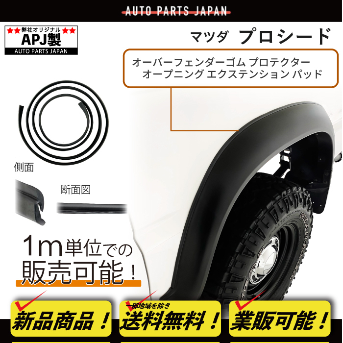 送込 定型外 APJ製 マツダ プロシード オーバーフェンダー ゴム プロテクター オープニング エクステンション パッド 汎用 両面テープ付 黒