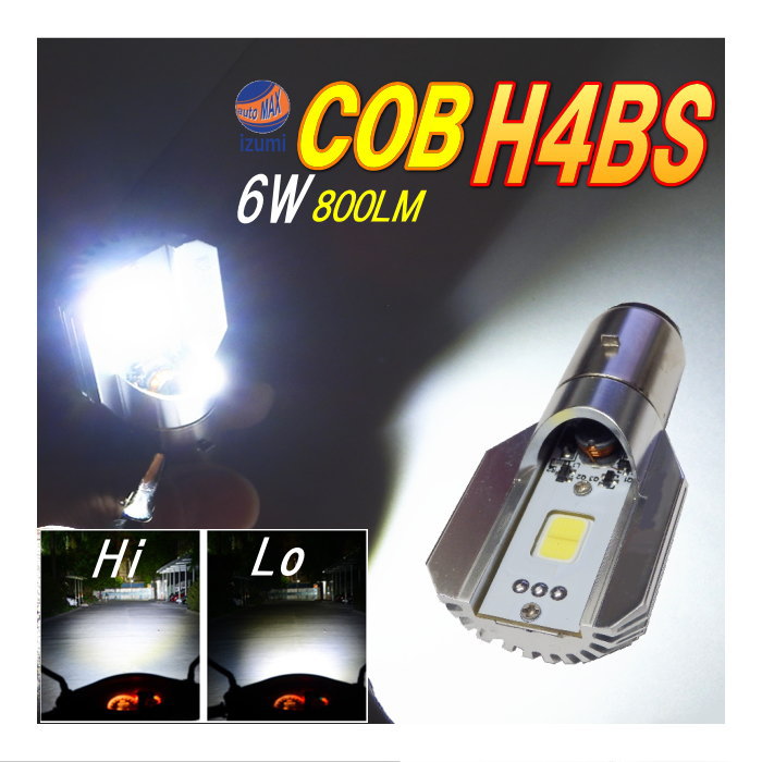H4BS Hi/Lo切替タイプ ホワイト バイク用ヘッドライト フォグランプ BA20D型 形状 DC8V-80V COB面発光LED 12W 800lm 汎用オートバイ用バルブ 簡単取り付け