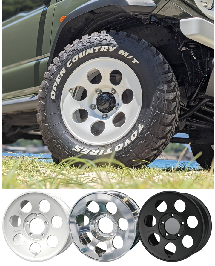 ●ホイールメーカー名:AXR (オートルビーズ)商品名:Ramone (ラモーン)カラー:マットブラック、ヴィンテージマットホワイト、ダイヤカットポリッシュの3色インチ:16インチJ数 6JPCDインセット:5穴139.7 -5ホイール製法:鍛造 タイヤ:TOYOオープンカントリーMTタイヤサイズ:225/75R16※1本単価となりますので、必要な本数をご購入くださいませ。ジムニーシエラ用のホイールになります。ジムニー用は他ページにて販売しておりますので、ご確認くださいませ。送料無料にてお届け致します。※原材料高騰中の為、予告なく値上げする場合がございますので、ご理解くださいますようお願い致します。お急ぎの方はお問合せくださいませ。