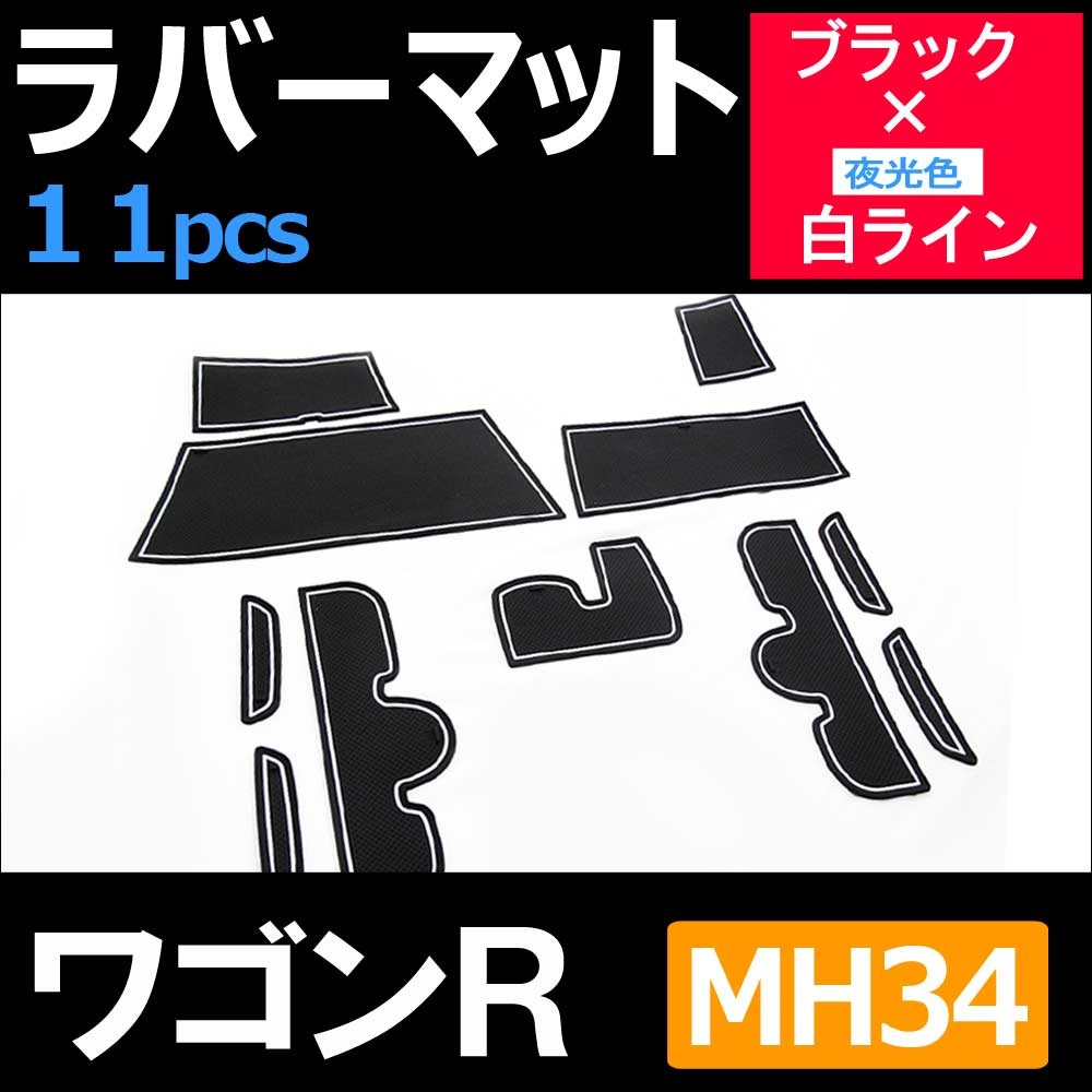 【互換品】ワゴンR MH34S/ラバーマット (ブラック 白ライン) 11p/ 夜光色 /コンソールマット/HN11S2002