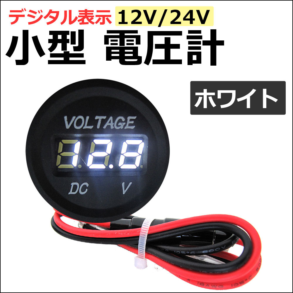 【互換品】(12V-24V) 汎用 小型電圧計 / ホワイト / LEDデジタル表示 / 車 バイク 船舶 / 防水