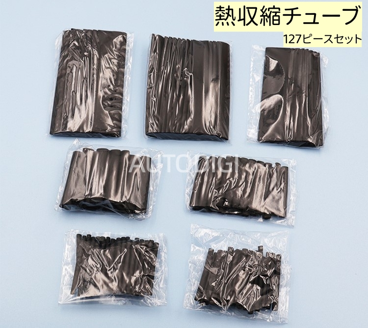 熱収縮チューブ 7サイズ 127ピースセット 使い分け便利 絶縁チューブ ワイヤーラップ 電線の補強 ケーブルスリーブ 配線修理 防水 黒