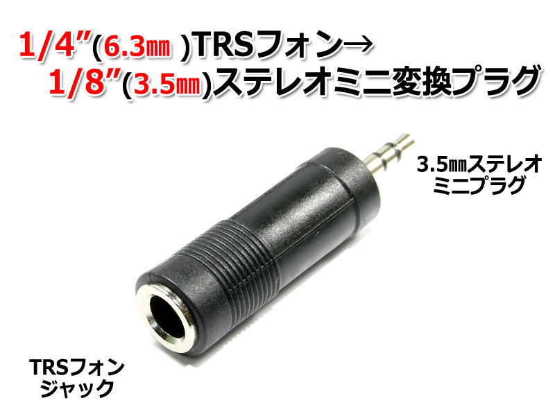Φ6.3mm(1/4") TRSフォンジャック メス → Φ3.5mm(1/8")ステレオミニプラグ オス 変換プラグ