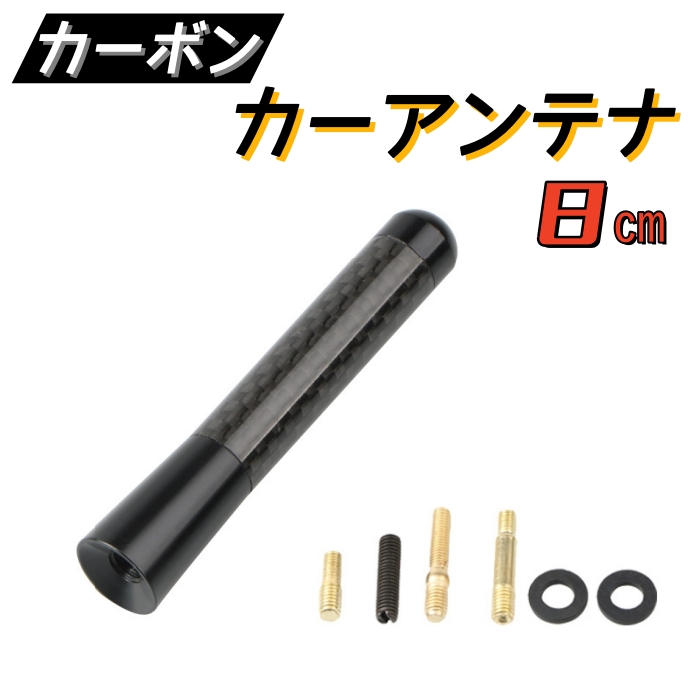 カーボンアンテナ カーアンテナ 黒 交換用 ショートアンテナ 8cm 80mm ブラック ユーロアンテナ ネジ径M5、M6対応 汎用 高感度 AU180