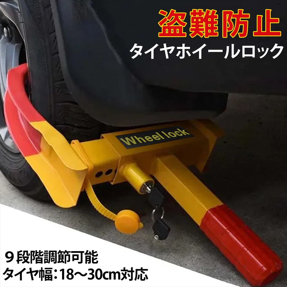 タイヤロック 盗難防止 車 ホイールロック 自動車 軽自動車 普通車 鍵2個付 9段階調節 18〜30cm対応 簡単取り付け 盗難対策 セキュリティ タイヤホイールロック