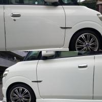 カスタムフェンダーメッキモールです。 フェンダー部分とドア部分の2方向に貼り付けるだけで スタイリッシュ&スマートにドレスアップします。 サイドにシンプルなアクセントが欲しいとお考えの方には最適な商品です。