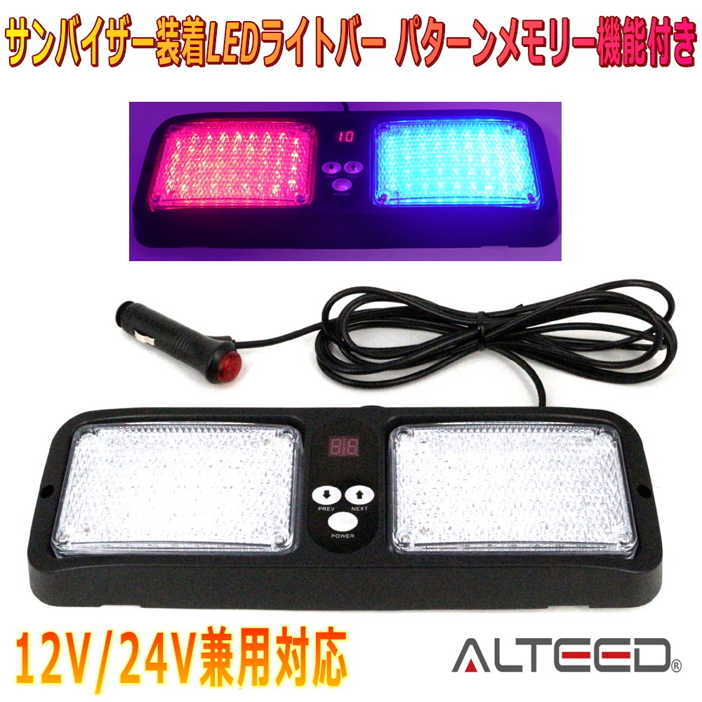 | 84LED搭載ライトバーです。 本体のスイッチにより、点灯点滅パターンを12パターンにチェンジ出来ます(交互点滅、フラッシュ点滅等。詳しくは動画をご参照下さい)。また、点灯パターンは電源オフでもメモリーされますので、再起動時には同じパターンから点灯します。 高照度のSMD LEDチップを搭載。従来のLED球に比べより強力に発光します。 発光拡散効果レンズ採用でより輝かしく点灯点滅します。 マジックテープバンド付きなので、サンバイザー等へ簡単に装着が行えます。もちろん、バイザー以外にも使用用途はアイデア次第で活用可能です。 シガーソケットからの簡単接続で、緊急時、作業時等の警告灯として最適です。 |