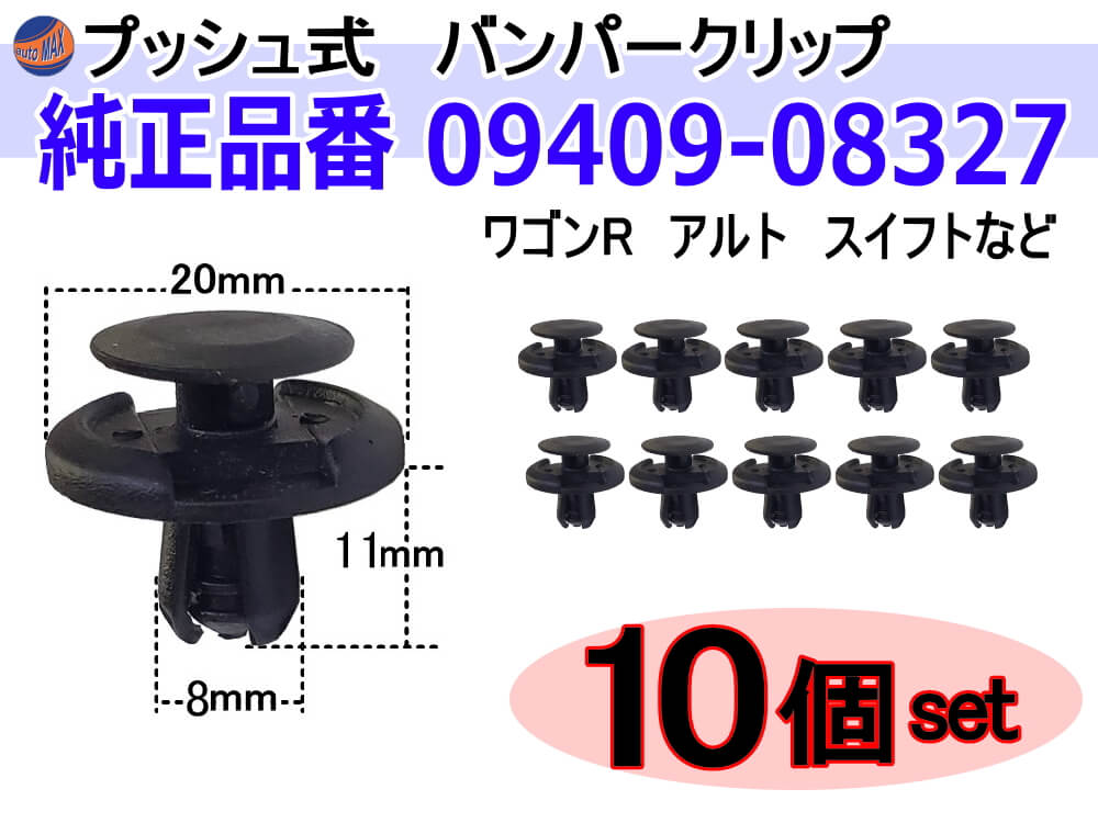 バンパークリップ 10個 (J) 10個1セット 純正品番 スズキ 09409-08327 日産 マツダ トヨタ スバル ミツビシ プッシュリベット 内張り トリムクリップ