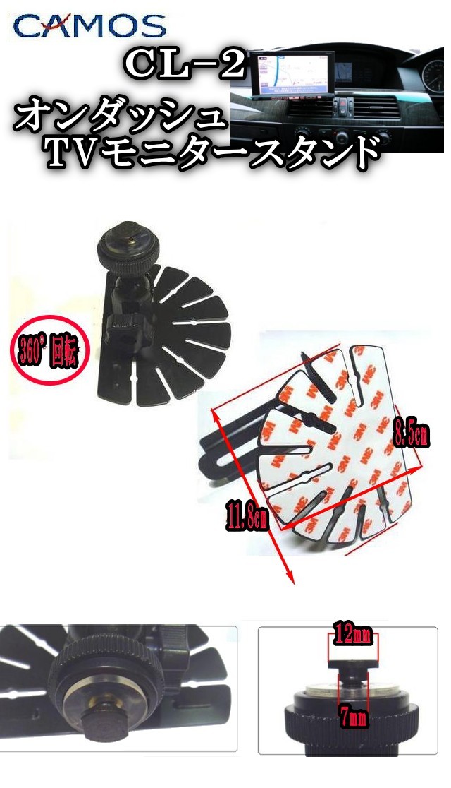 管2 CAMOS (カモス) CL-2 モニタースタンド 取り付け台 3M製 両面テープ貼り付け済 汎用 オンダッシュ用 モニター ディスプレイ用 台座 扇形