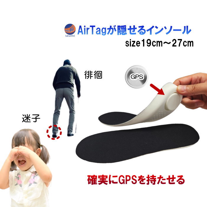 エアタグが隠せるインソール 19cm〜27cm GPSが隠せるポケット付き 徘徊 迷子対策 カット可 エアタグケース付き 中敷き ホルダー インソール