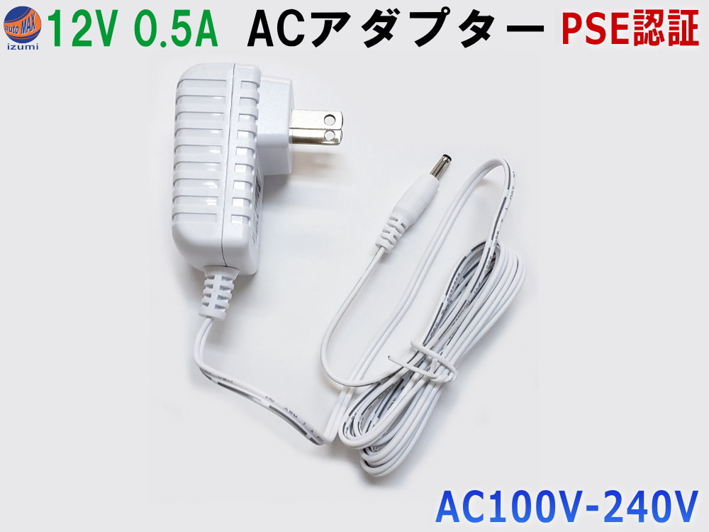 ACアダプター(DC12V 0.5A) 空気清浄機H-1用 アダプタ 修理 交換用 PSE認証 汎用 白 ホワイト AC/DCアダプター IJIO
