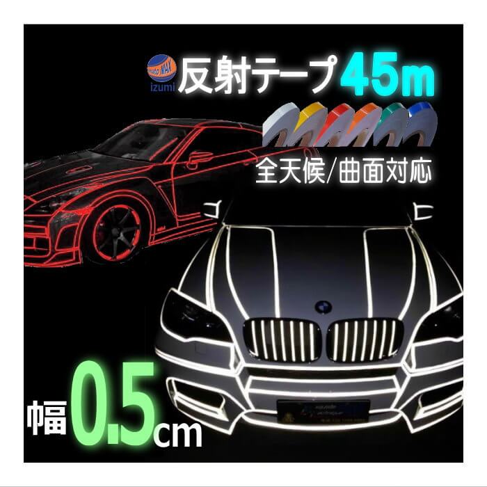 反射テープ 0.5cm 幅5mm 長さ45m リフレクトラインテープ 夜間 リフレクター シートデコライン 強力ステッカー 反射シール 光る 反射光 反射板 ライト安全 接着