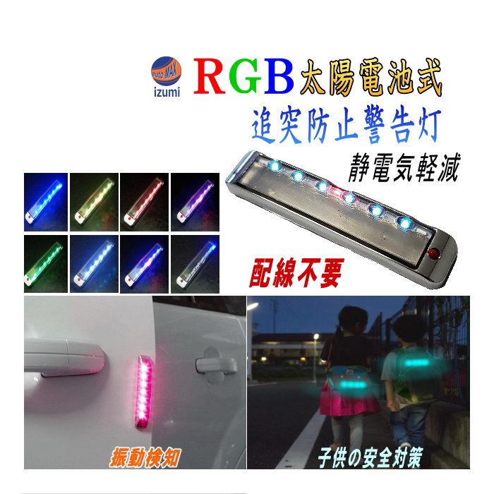 太陽光充電 配線不要 車 バイク 後続車 夜間 追突防止 衝突 事故対策 ダミーセキュリティ 勝手口 防犯 子供の夜道 安全対策 後方車 車間距離 アピール LED点灯フラッシュ 車上荒らし対策 雨 イルミネーション ドアエッジガード automaxizumi AUTOMAX izumi オートマックスイズミ AUTOMAXIZUMI