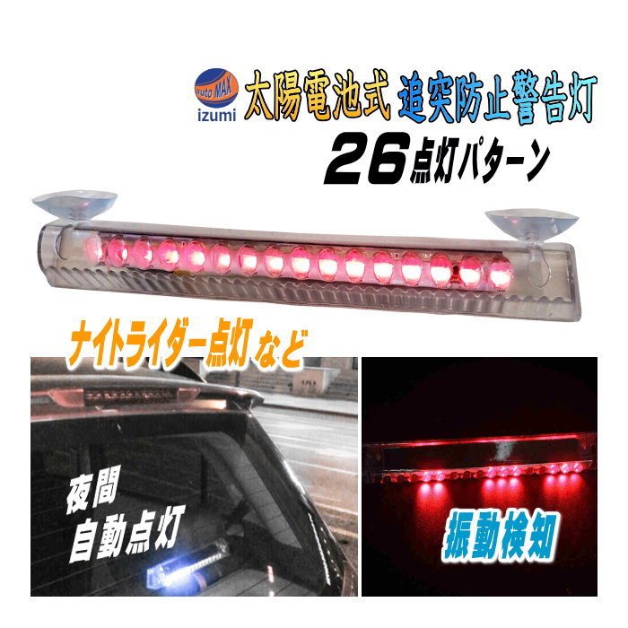 太陽光充電 配線不要 車 後続車 夜間 追突防止 衝突 事故対策 汎用 ダミーセキュリティ 勝手口 防犯 車間距離 レッド LED警告ランプ automaxizumi AUTOMAX izumi オートマックスイズミ AUTOMAXIZUMI