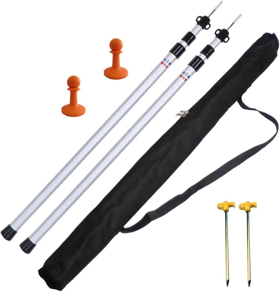 タープ ポール テント ポール 2本 キャンプ 簡単設置 伸縮式 アルミ製 スライド式 組立不要 無断階調整 長さ調整簡単 日除け 熱中症対策 雷よけ ポールエンド