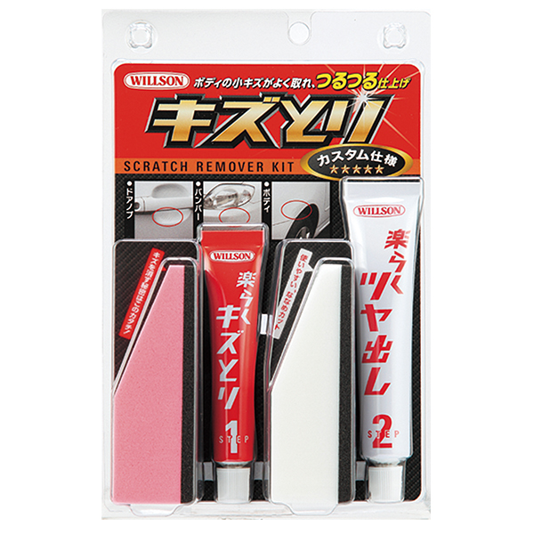 | ステップ1…ハイモースパウダー配合の「楽らくキズとり」でキズを消します。 ステップ2…カルナバWAX配合の「楽らくツヤ出し」でつるつるに仕上がります。 ななめカットスポンジだからドアノブ等のスキマ部分もすいすい磨けます。 グリップが手のひらにフィットするので、広いスペースも楽に磨けます。 【使用上の注意】 ●用途以外には使用しないでください。 ●未塗装のバンパー、プラスチック、タイヤ、ゴム、ガラス、レザー、レンズ、メッキ部品等、ボディの塗装面以外には使用しないでください。 ●研磨しすぎにはご注意ください。 ●再塗装車や劣化の激しい部分は、目立たぬ所で試してからお使いください。 ●キズの程度によっては、十分な効果が得られない場合があります。 |