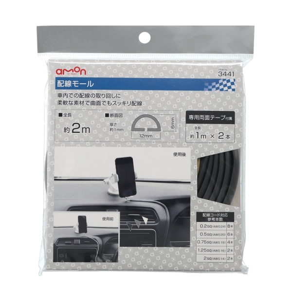配線モール 2M 配線取り回し 貼り付けるだけ 車内配線スッキリ エーモン 3441