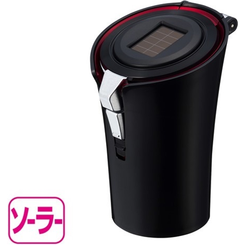 ソーラーライトアッシュ BK 灰皿 タバコ LED照明付き 消火穴 スリム ソーラーバッテリー ブラック 星光産業 ED-235