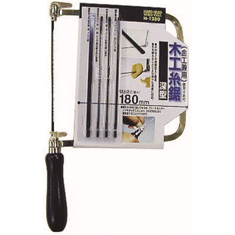 | 木材の曲線加工に最適! 【仕様】 ●替刃4本付 (細目・中目・荒目・非鉄金属用) ※本体には荒目が付属 商品名:H&H 深型木工糸鋸 JANコード:4954458260768 品番:H-1280 切込深さ:180mm 重量:175g |