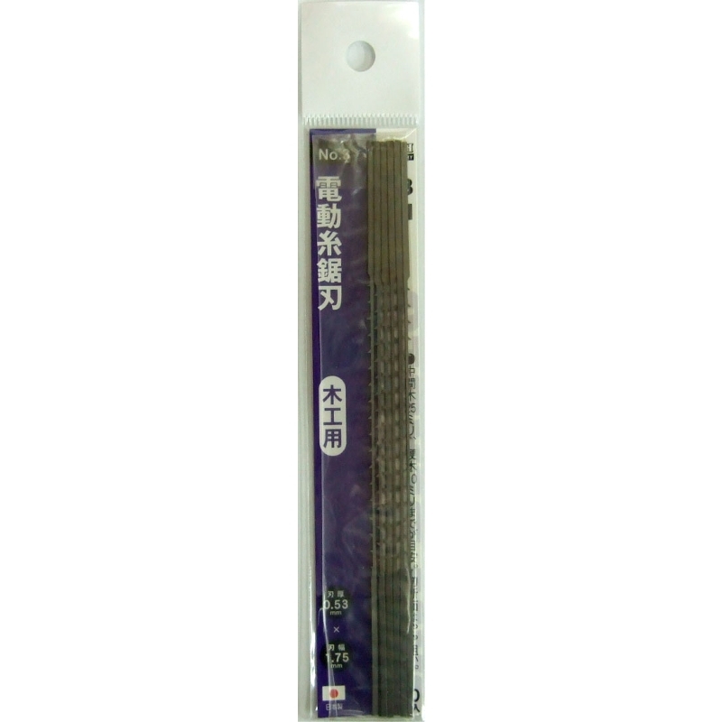 | 【糸鋸刃の選定方法】 《返し刃》 モッコウの刃には必ず返し刃と呼ばれる逆向きの刃が施されており、木材特有のバリが出るのを防ぐ働きがあります。 《アサリ》 刃先形状に特徴をもたせ、左右・交互に刃口を開かせた細工がなされ、より硬い材料の加工に適しています。 《刃の厚み》 薄い---軟材の加工用、細かい細工加工に適した小さなR加工が可能 厚い---硬材の加工用、直線加工に向き小さなR加工は不可 《刃の幅》 狭い---薄い軟材の加工用、細かい細工加工に適した小さなR加工が可能 広い---厚い硬材の加工用、直線加工に向き小さなR加工は不可 《刃の数》 多い---薄い軟材の加工用、切り口の仕上がりは良い 少ない-厚い硬材の加工用、切り口の仕上がりは粗い 【切断目安について】 ●軟木材・・・桐・杉・檜・バルサ・シナベニヤ等 ●中間木材・・・桂・栂・茅・銀杏・松・栗・ヒバ・パイン等 ●硬木材・・・ブナ・楢・桜・黒檀・紫壇・ケヤキ・ラワン等 (上記はあくまで参考です 材料の厚みによって違います) ●プラスチック・アクリルを切るには、ロウ紙・水ロウを付けて使用しますと仕上り面がきれいになります。 ●鉄・アルミ板は切る線に油を塗ると刃の持ちが良くなります。(金物を切ると接触部分の色は取れます) 商品名:H&H 電動糸鋸刃 木工用 10本入 18山 JANコード:4954458260034 品番:#3 用途:木工用 刃厚:0.53mm 刃幅:1.75mm 山数・仕様:18山 切断目安:中間木25mm、硬木10mmまで 切断面:やや粗い |