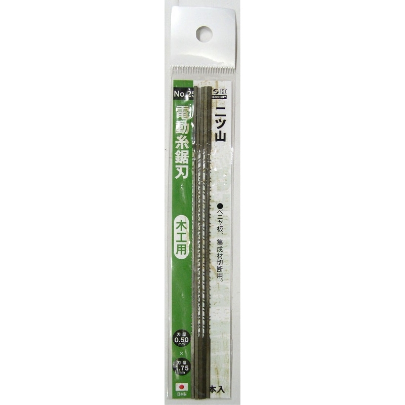 | 【糸鋸刃の選定方法】 《返し刃》 モッコウの刃には必ず返し刃と呼ばれる逆向きの刃が施されており、木材特有のバリが出るのを防ぐ働きがあります。 《アサリ》 刃先形状に特徴をもたせ、左右・交互に刃口を開かせた細工がなされ、より硬い材料の加工に適しています。 《刃の厚み》 薄い---軟材の加工用、細かい細工加工に適した小さなR加工が可能 厚い---硬材の加工用、直線加工に向き小さなR加工は不可 《刃の幅》 狭い---薄い軟材の加工用、細かい細工加工に適した小さなR加工が可能 広い---厚い硬材の加工用、直線加工に向き小さなR加工は不可 《刃の数》 多い---薄い軟材の加工用、切り口の仕上がりは良い 少ない-厚い硬材の加工用、切り口の仕上がりは粗い 【切断目安について】 ●軟木材・・・桐・杉・檜・バルサ・シナベニヤ等 ●中間木材・・・桂・栂・茅・銀杏・松・栗・ヒバ・パイン等 ●硬木材・・・ブナ・楢・桜・黒檀・紫壇・ケヤキ・ラワン等 (上記はあくまで参考です 材料の厚みによって違います) ●プラスチック・アクリルを切るには、ロウ紙・水ロウを付けて使用しますと仕上り面がきれいになります。 ●鉄・アルミ板は切る線に油を塗ると刃の持ちが良くなります。(金物を切ると接触部分の色は取れます) 商品名:H&H 電動糸鋸刃 木工用 5本入 二ツ山 JANコード:4954458257256 品番:#25 用途:木工用 刃厚:0.50mm 刃幅:1.75mm 山数・仕様:二ツ山 切断目安:ベニア板、集成材用 切断面: |