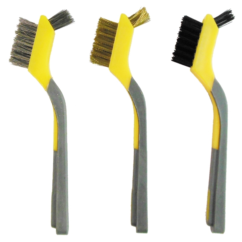 | ステンレス・真鍮・ナイロン、 用途によって使い分けができる! 【特長】 ●握りやすく滑りにくいソフトグリップ! ●大小のブラシで幅広い作業ができる! ●先端ブラシ付きだから細部の作業にも対応! 【用途】 ●ステンレス…サビ落とし・ペンキ落とし水廻りの作業に ●真鍮…真鍮・銅・合金の研磨に ●ナイロン…デリケートなものの汚れ落としに 商品名:trad 3本組ワイヤーブラシセット JANコード:4954458304813 品番:TWB-3 行数:3行 全長:170mm 幅:12mm 植付:35mm 毛丈:15mm 毛先長さ:15mm 重量:20g 材質:ステンレス/真鍮/ナイロン |
