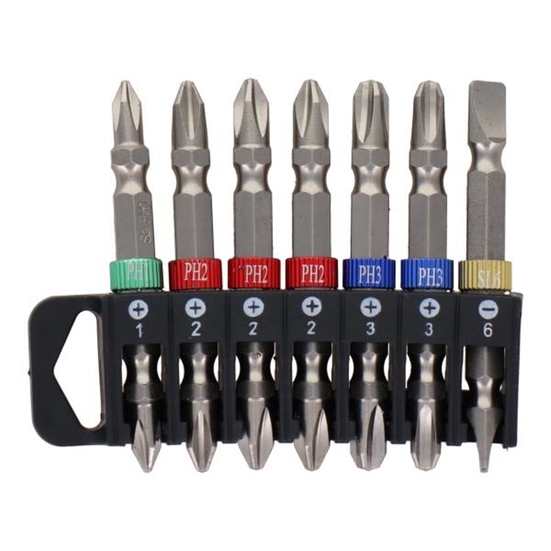 | 色とサイズ表示で見分けが簡単! 【特長】 ●色とサイズ表示で見分けが簡単 ●ビットホルダー付 ●インパクト対応 ●マグネット付 【セット内容】 ●両頭ビット: +1×65mm(1本)、+2×65mm(3本)、+3×65mm(2本)、6×65mm(1本) 【材質】 ●ビット:S2材 ●ホルダー:ABS 【シャンク形状】 六角軸6.35mm 商品名:trad 7pcs.コンビネーション両頭ビットセット 65mm JANコード:4954458295111 品番:TCB-765 |