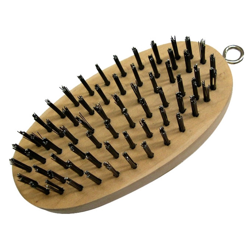 商品名:小判型ワイヤーブラシ スチール JANコード:4954458241545 品番:HB-W7 行数:6行 全長:140mm 幅:60mm 植付:110mm 毛丈:20mm 重量:100g 材質:スチール