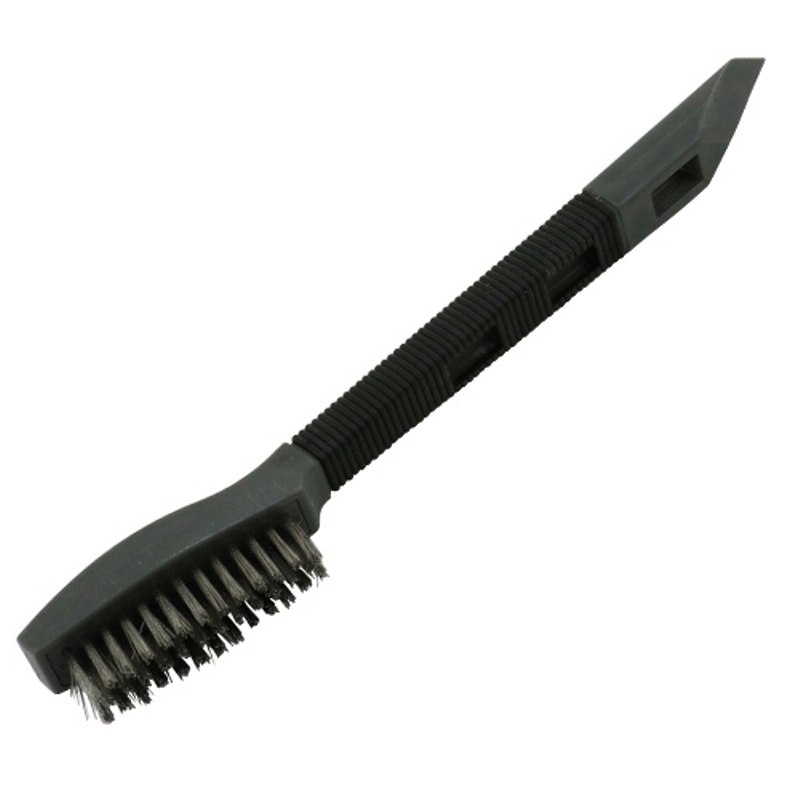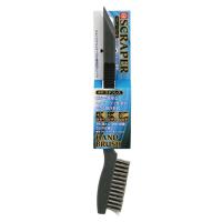 | ■■■用途■■■ サビ落とし・研削・研磨作業、および簡易スクレーパー作業。 ■■■機能・特徴■■■ ハンドブラシに簡易のスクレーパー機能をプラスアルファしました。 ブラシだけでは落ちない汚れには、スクレーパー作業で対応します。 木柄と違い長期の使用でもグリップにカビが生えず、付着した汚れも洗い落しやすくなっています。 ■■■仕様■■■ ●グリップ部:PP+エラストマー2重成型グリップ。 ●ブラシ毛材:ステンレス(径0.19mm×毛丈15mm)。 ■■■注意事項■■■ 使用用途以外では使用しないでください。 作業に合ったブラシ線材をお選びください。対象物の素材や状態によっては、対象物にキズが入る可能性がありますので、ご注意下さい。 作業時には、手袋や安全メガネなどの保護具を着用してください。 ■■■商品サイズ(幅×高さ×奥行)■■■ 約20×220×35 ■■■材質■■■ ●柄:PP・エラストマー。 ●ブラシ毛材:ステンレス。 ■■■その他■■■ 使用後は汚れをしっかりと落としてから、保管してください。 ※ページ記載の内容については予告なく変更する場合があります。ご了承下さい。 |