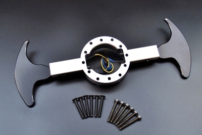 | ■手元のパドルレバーでシフトチェンジなどに使える汎用パドルシフターです。 ■ステアリングにシフトチェンジスイッチなどが内蔵されたDCTやAT車では、 ステアリングを替えるとその機能は使用できなくなってしまいますが、 このパドルシフターを使うことでステアリングを交換してもシフトチェンジが可能となり、 さらにレーシー感を増したコクピットを演出します。 ■パドルレバーは10mmの出し入れが可能です。 (レバー左右の幅で315-285mの間で調整可能です) 手の大きさやステアリングの直径にあわせて好みの調整が可能です。 ※場合により付属カプラーの端子の入れ替えが必要な場合があります。 ※パドルシフトは汎用品としての販売の為、基本的にすべてのラインナップで取付には 配線加工が必要です。 ※配線加工にはある程度の専門知識、電気テスター・半田ごてなど工具が必要となります。 ※スポーツシフト(シフトレバーでギアアップ、ダウン)を行なう車種では、 ステアリングコラム内の「コンタクトスリップリング」ステアリングホイールと 車体とを繋ぐ電気的接点を利用して使用可能となりますが、 配線は取付する方自身で作って頂く必要があります。 ■ご注文・納期等について ・商品名に、【在庫品】等の表記がない商品は、メーカー取り寄せ品になります。 ・ご注文受付後、全てのご注文に対し、納期のご連絡をしております。 (ご注文前の納期のお問い合わせは、ご注文時と納期が異なるトラブルが発生致しますのでお受けしておりません。) (納期のみのご質問は、「納期確認後に注文可否」と記載の上、一旦ご注文のお手続きをお願い致します。) ・弊社からの納期等ご案内メールに「ご返信をお願いします」とある場合は、 ご承諾のご返信を頂いてからの正式注文となります。 ■ご注文後のキャンセルや変更は不可となりますので、商品やカラー等、お間違い無いようお願い致します。 ※商品写真は実際の商品とカラーやイメージが若干異なる場合もございます。 ※商品名や説明等でご確認ください。 ■発送について ・エアロパーツ・マフラー等の大型商品は、個人宅への直送が出来ません。 また、小さな商品でも、メーカーによっては個人宅直送不可の場合がございます。 発送先に、塗装・取付店等の業者様をご指定下さい。 ※発送先が自動車関連の業者様(整備工場やショップ等)の場合は、表示価格でご購入頂けます。(沖縄・離島は除く) ・上記、発送先のご指定が難しい場合は、オートバックス店舗受取サービスもご利用頂けます。 店舗受取の場合、お引取り時に店舗レジにて、手数料¥880(税込)のお支払いが必要になります。 ■お届け商品について ・塗装・加工・装着後の交換や返品は、理由を問わず一切お受けできません。 ※フィッティング不良やメーカー誤出荷の場合もお受けできませんので、 商品到着後1週間以内に、検品や仮合わせを必ずお願い致します。 | |