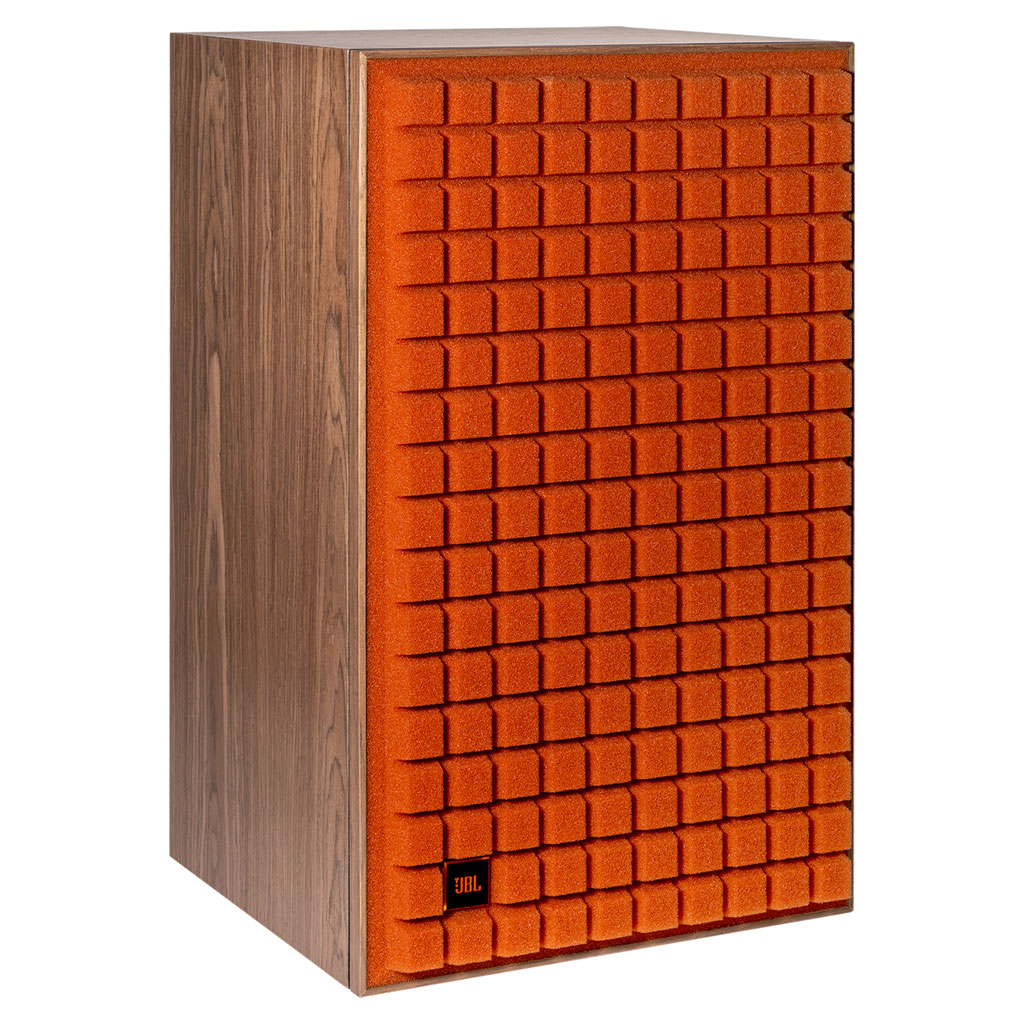 ブラック、オレンジ、またはブルーから選択できる Quadrex発泡グリル付き、純正ウォールナット化粧板のエンクロージャー
