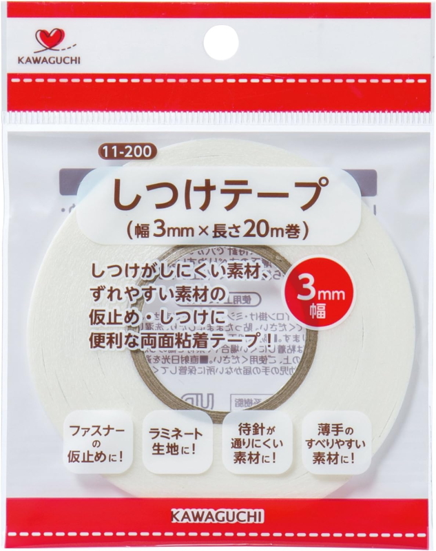 仮止め・しつけに。両面接着。 【河口KAWAGUCHI】 しつけテープ 幅3mm 11-200 【C1-4-110-1】U-OK
