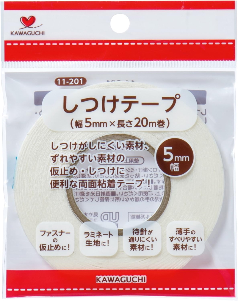 しつけがしにくい素材、ずれやすい素材の仮止め、しつけに便利な両面粘着テープです。