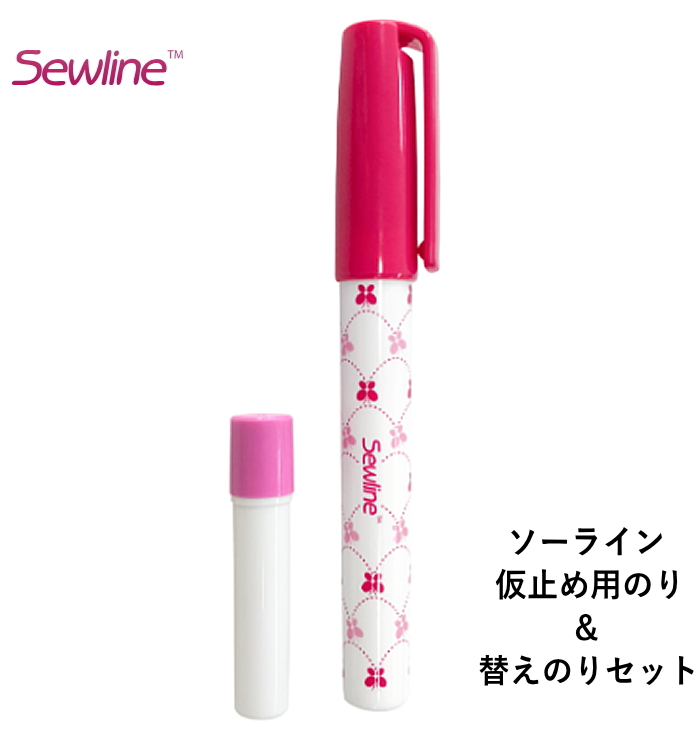 まち針不要。ミシンも通る。 【ソーライン】 Sewline 仮止め用のり&替えのりセット 青 FAB50012 【C1-4-120-1】