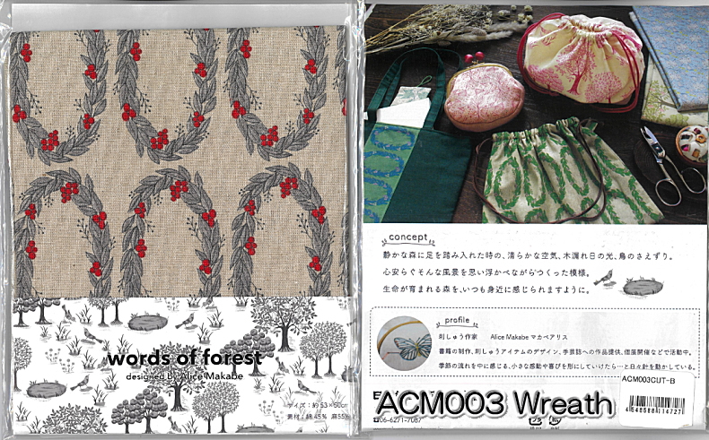マカベアリス words of forest【カットクロス 約53cm×50cm】 綿麻キャンバス Wreath ACM003CUT 綿45%麻55% ◆◆ 【C2-6】U-10 115-1