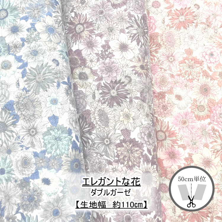 エレガントな花柄のダブルガーゼ生地