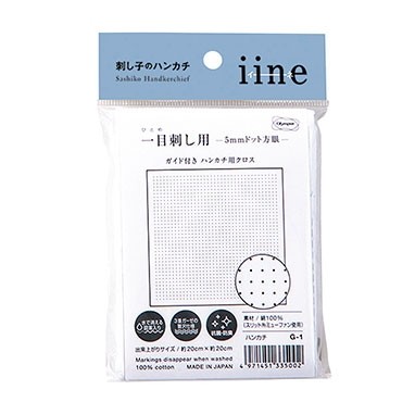 【オリムパスOLYMPUS】 刺し子のハンカチ「iine イーネ」 布パック G-1 5ミリドット方眼(白) 【C3-7-122-3-1】U12