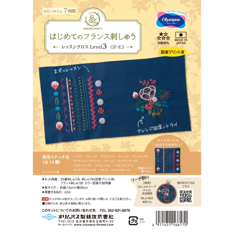 【オリムパスOLYMPUS】はじめてのフランス刺しゅう GP-K3 レッスンクロス Level 3