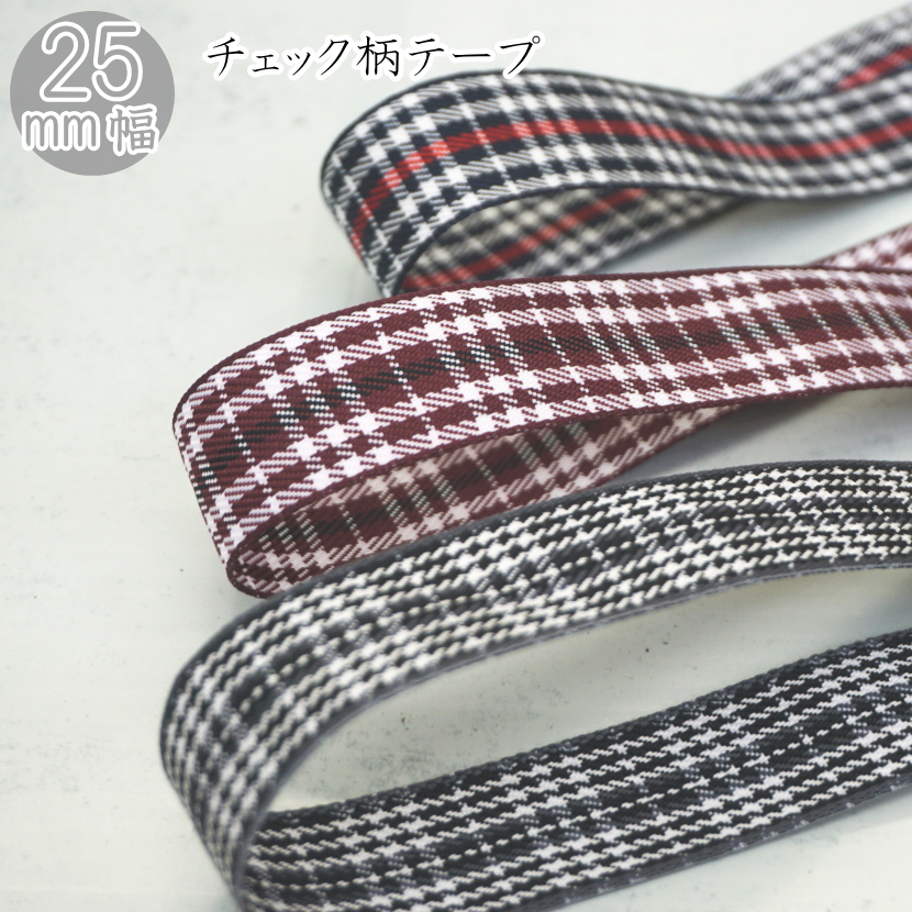 【Joint】 ソウヒロ 約25mm幅 チェック柄テープ(数量×10cm) jtt-p2528 ポリエステルテープ 入園入学 小物づくり 【C1-4-121-15】